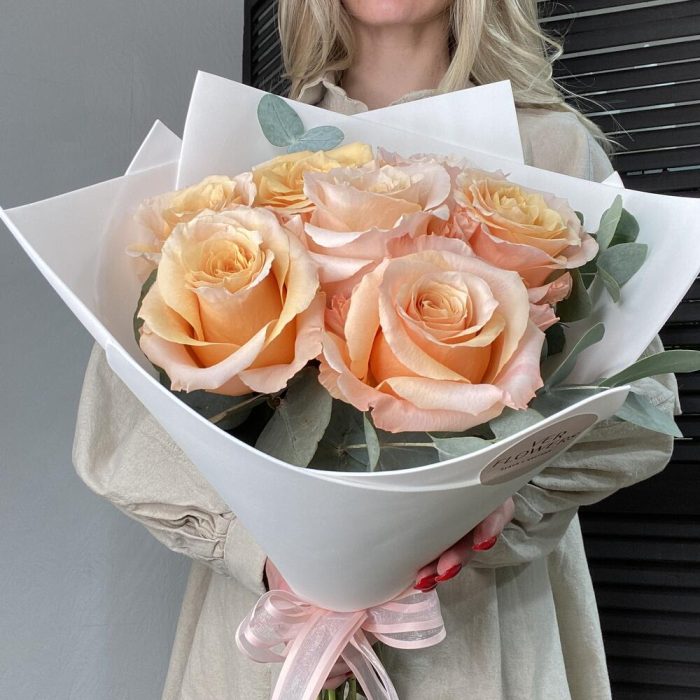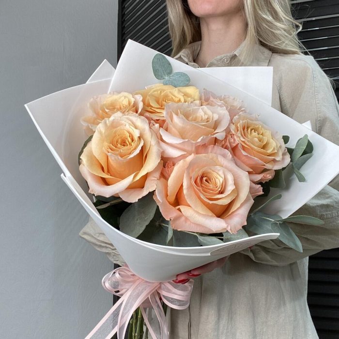 Букет из 7 роз и эвкалипта