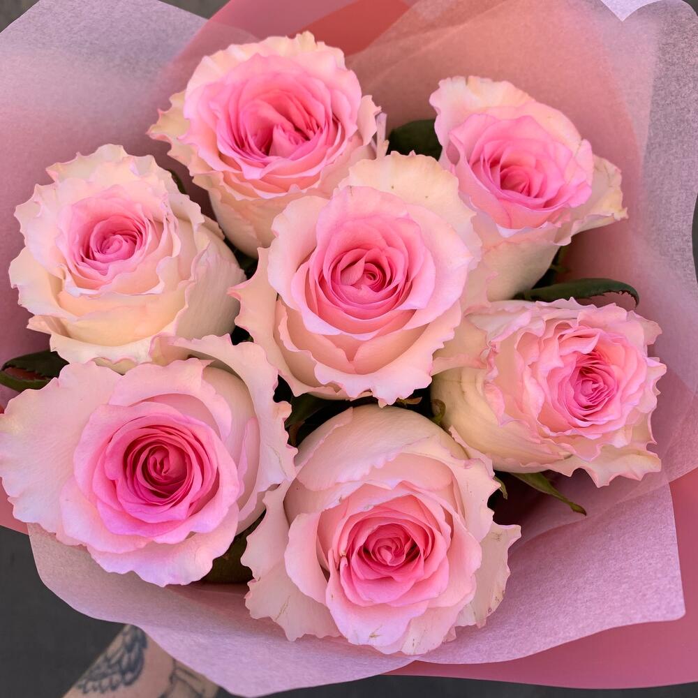 Букет из 7 розовых роз «Мандала»