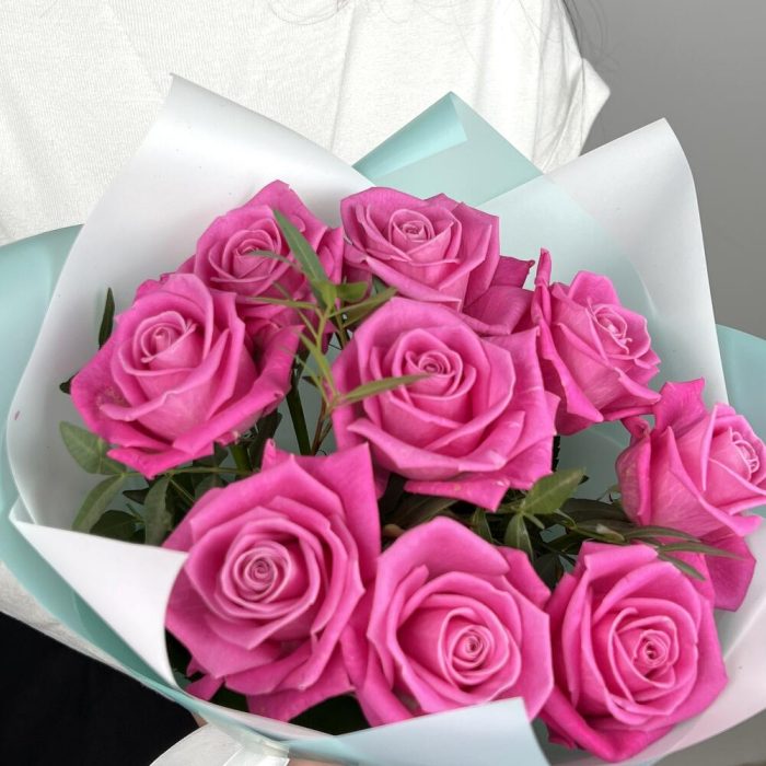 Букет из 9 розовых роз в крафтовой упаковке