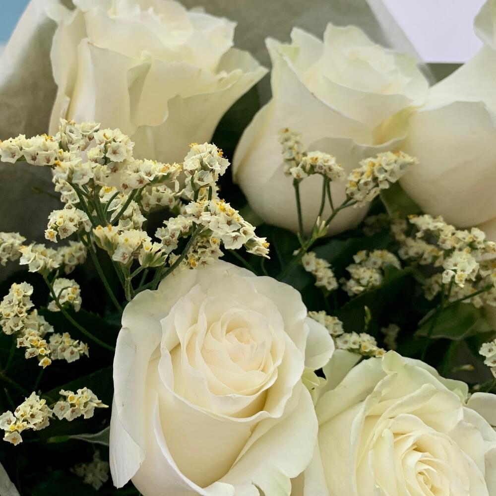 Букет из белых роз в шляпной коробке "Светлые чувства"